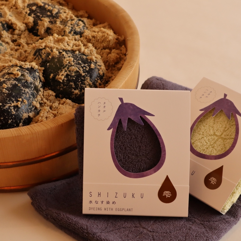 泉州特産の水なすの中から特に品質の良い「特選品」だけを使って、その日の朝に収穫した新鮮なものをその日の内に漬け込んだ水なす浅漬けと、水なすの皮と実それぞれから抽出し染め上げた水なす染め泉州タオルのセットです。