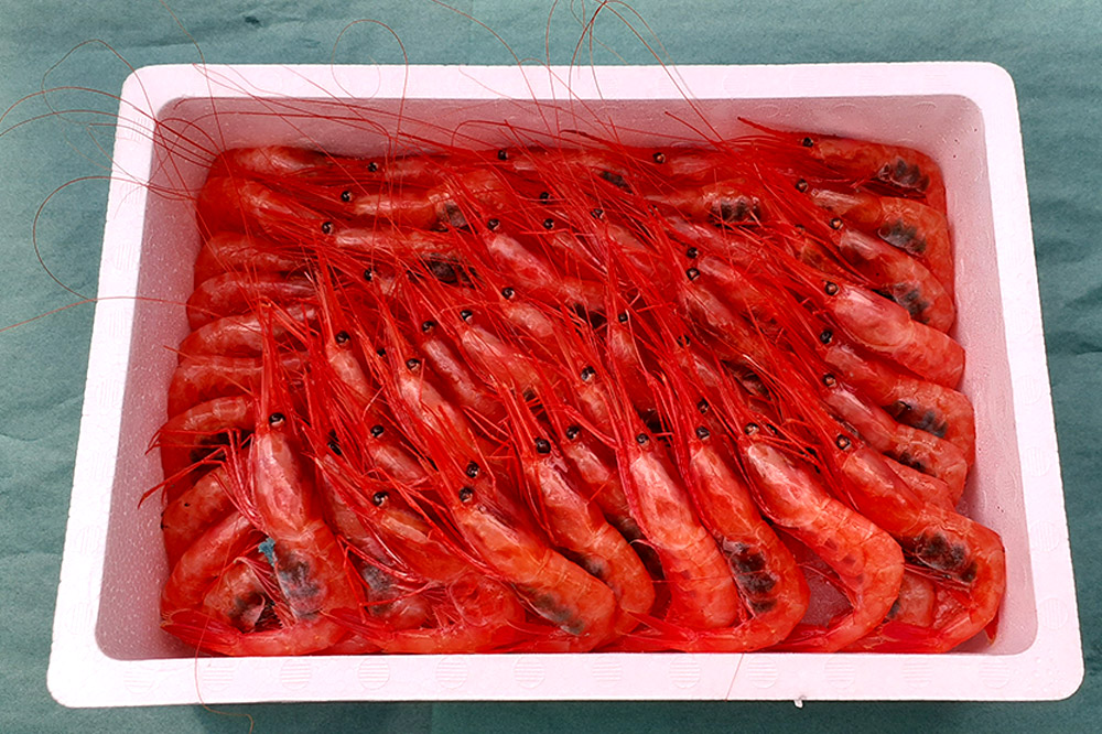 自社持ち船のエビカゴ漁で獲れた、新鮮なナンバンエビを活(生きた)のまま丁寧に梱包し発送いたします。
