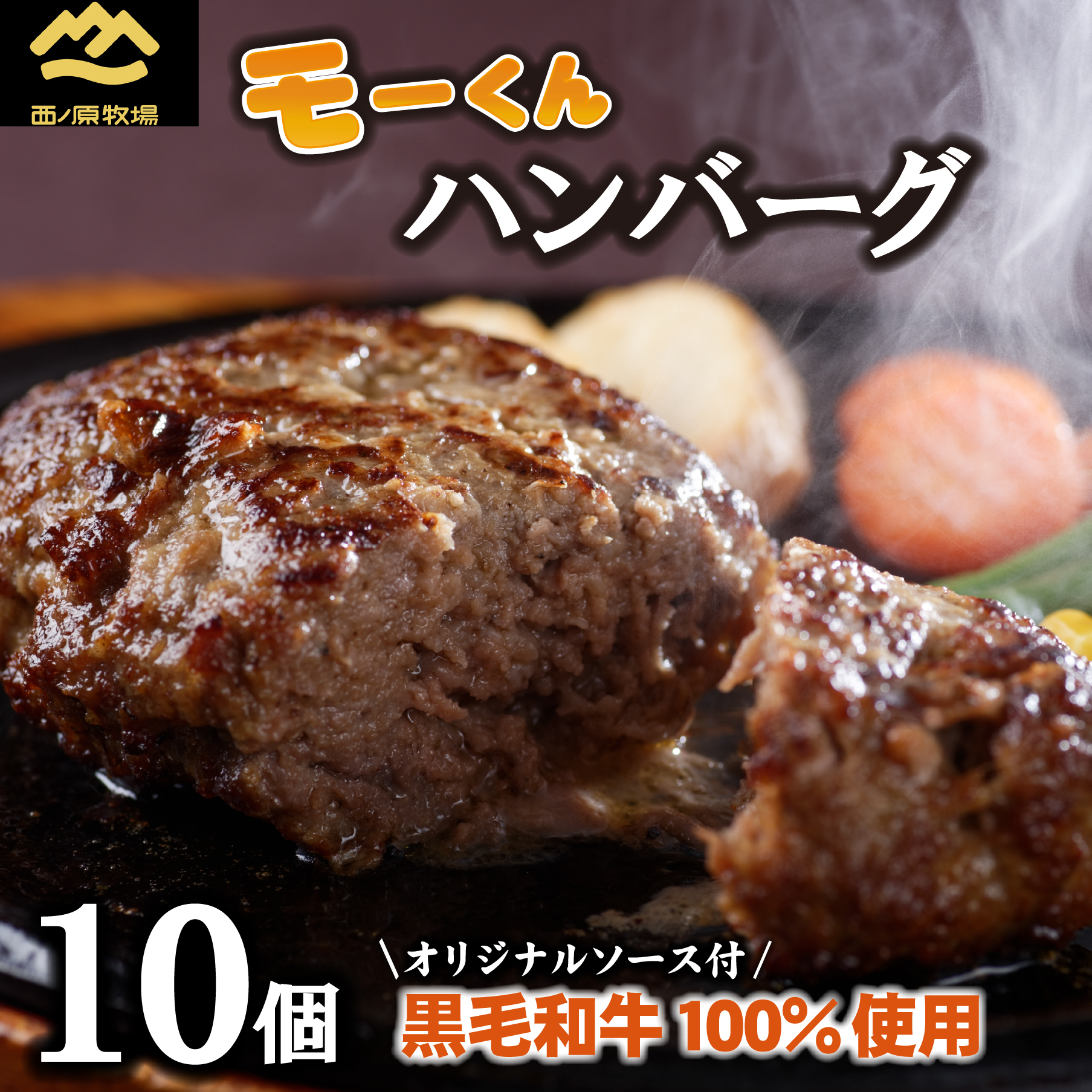 自社牧場で丁寧に育てられた黒毛和牛を使用したハンバーグは、あふれでる肉汁の薫りと旨味が口いっぱいに広がります。