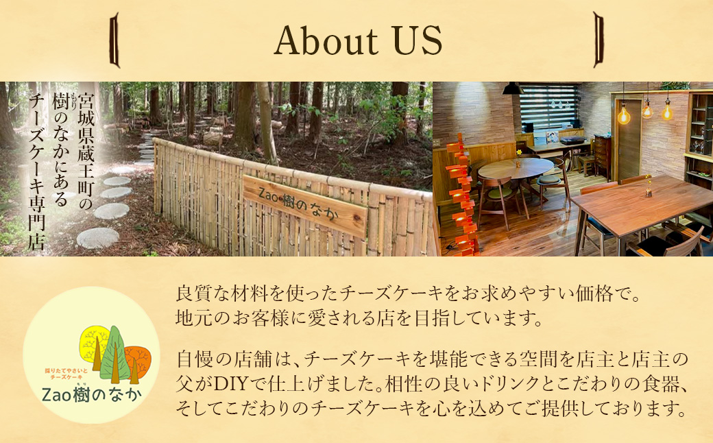 宮城県蔵王町の緑豊かな店内で1ホールずつ手作りで丁寧に焼いております。