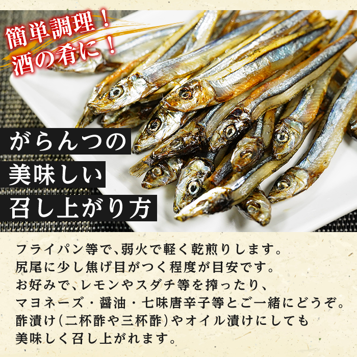 大正十年創業"がらんつ元祖"の弊社が、この度新たに作り上げた記念すべき新商品です。「がらんつ」とは、水分を充分に干し取った小魚の干物の総称をさす島津期以来の薩摩言葉。
