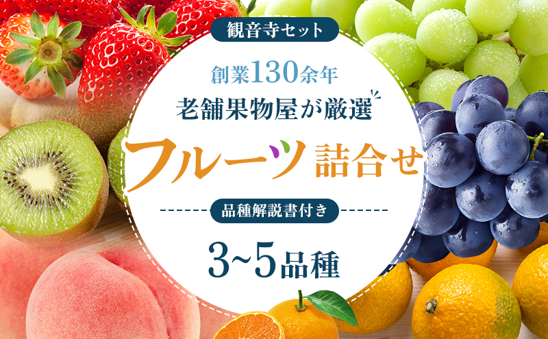 果物好きの、果物好きによる、果物好きのための詰め合わせ!をモットーに、その確かな視覚と味覚をもちまして、四季折々における、旬を見極めた観音寺産の厳選フルーツを3~5種類詰め合わせてお届けさせていただきます。