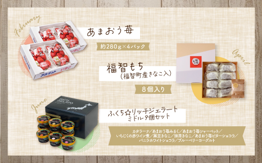 人気のフルーツや話題のスイーツなど、バラエティ豊かな品を隔月1品ずつ、1年間にわたってお届けします。