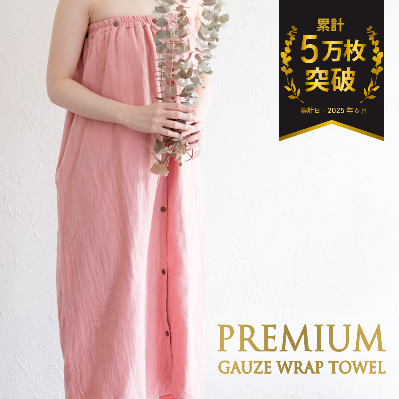 表面のガーゼ生地は「コンパクトヤーン」という高級糸で毛羽が出にくく、裏面のパイルは「コーマ糸」という短繊維を取り除いた柔らかく吸水力抜群の糸を使用。胸元のボタンが3段階調整できてずれ落ちません。吸水性と通気性に優れ、ムレにくくベタつかない気持ち良い着心地のラップタオルです。お風呂上りのリラックスタイムやジム、エステ、温泉、プールなど様々なシーンで活躍します。