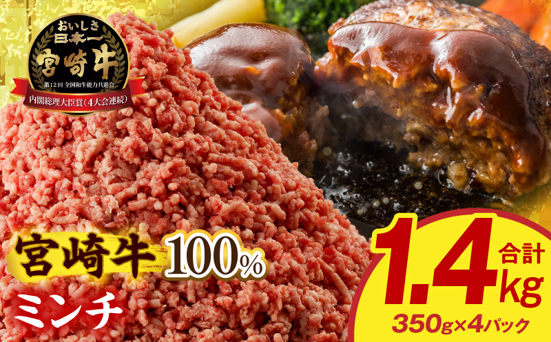 宮崎牛100%ミンチ350g×4パック 合計1.4kg