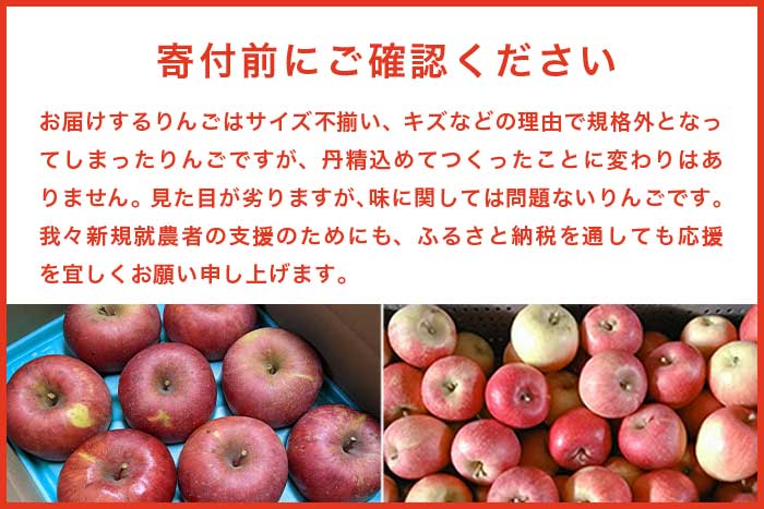 ※サイズ不揃い、キズなどの理由で規格外となってしまったりんごですが、丹精込めてつくったことに変わりはありません。見た目が劣りますが、味に関しては問題ないりんごです。