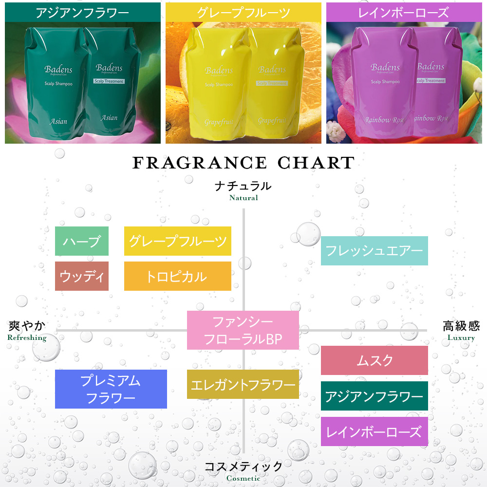 泡立ちがよく高い洗浄力を持ちながらも、キシミ感を与えず、洗い上がりの髪がしっとりとまとまります。