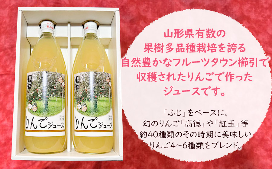 ふじをベースに、幻のりんご高徳や紅玉等約40種類のその時期に美味しいりんご4〜6種類をブレンド。