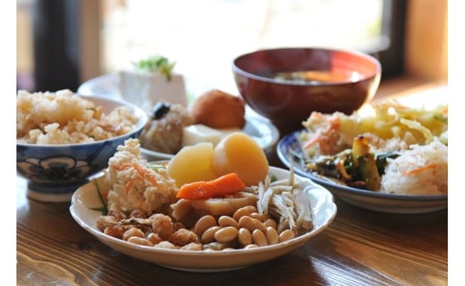 大豆は昔から農村の大切なタンパク源です。農村では、自給自足の生活の中から味噌を仕込む、漬物を漬ける、惣菜をつくるなど、命を紡ぐ知恵と技が育まれてきました。まめやでは、それらの食材と受け継がれてきた知恵と技を大切に守り、私たちの体にあった食べ物を安心してお召し上がりいただけるように地産地消による農村料理を提供しています。