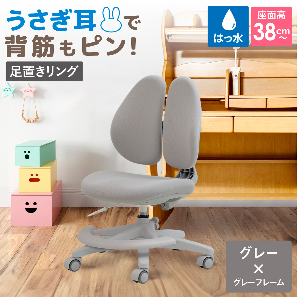 Rabbitチェア(足置きリング付き)グレー×グレーフレーム / デスクチェア オフィスチェア 背もたれスライドチェア スライド背もたれ 椅子 足置きリングチェア フットリングチェア 撥水チェア ファブリックチェア モールドウレタンチェア 高さ調節チェア デスクワーク 椅子 在宅ワーク 椅子 小柄向けチェア パソコンチェア コンパクトチェア シンプルデザインチェア 千葉県 No.397-02-[397-02]