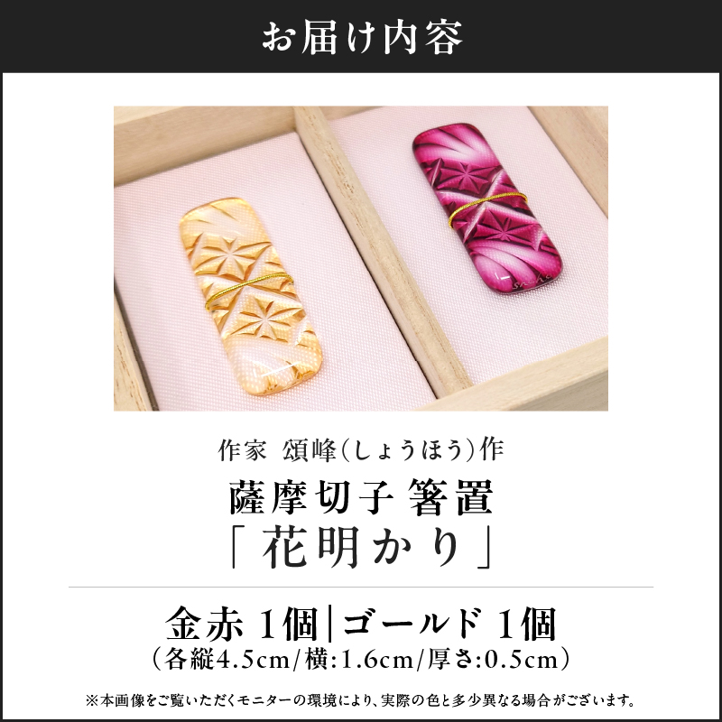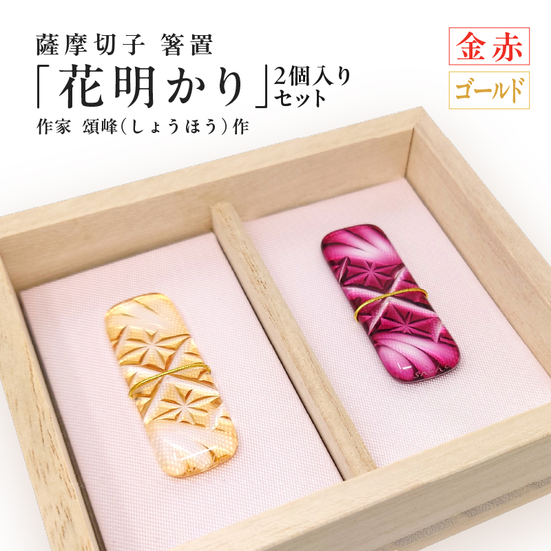 薩摩切子 箸置 「花明かり」 金赤 1個、ゴールド 1個