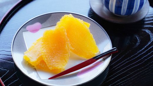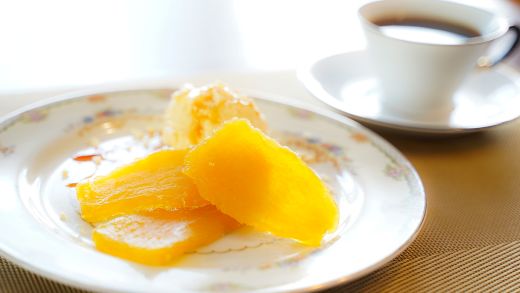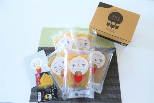 富士山からの冷たく乾燥した風「富士おろし」の下でじっくりと天日干しした干し芋は、黄金色で柔らかい食感になります。