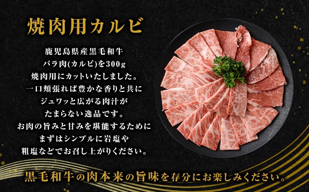 鹿児島県産黒毛和牛バラ肉(カルビ)を300g焼肉用にカットいたしました。