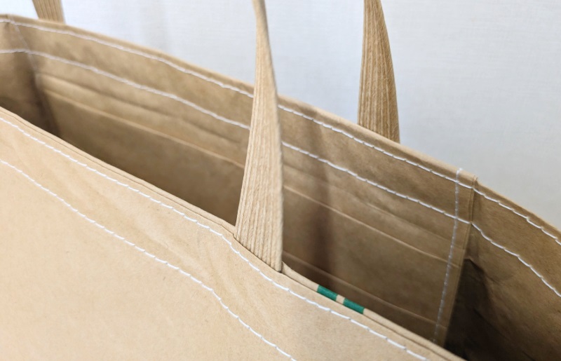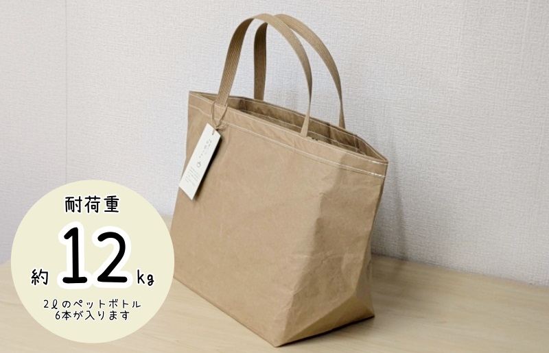 軽やかなクラフト紙の風合いは使うほどに味わいを増し、持つ人だけの特別な表情へと変化。約12kg(2Lボトル6本相当)を支える丈夫さと内ポケットの実用性で、買い物や習い事にも活躍します。