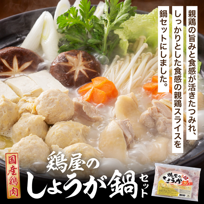 親鶏の旨みと食感が活きたつみれ、しっかりとした食感の親鶏スライス(もも・むね)を鍋セットにしました。