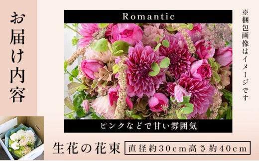 - 生花の花束 ・直径約30cm/高さ約40cm ・Romantic(ピンクなどで甘い雰囲気)
