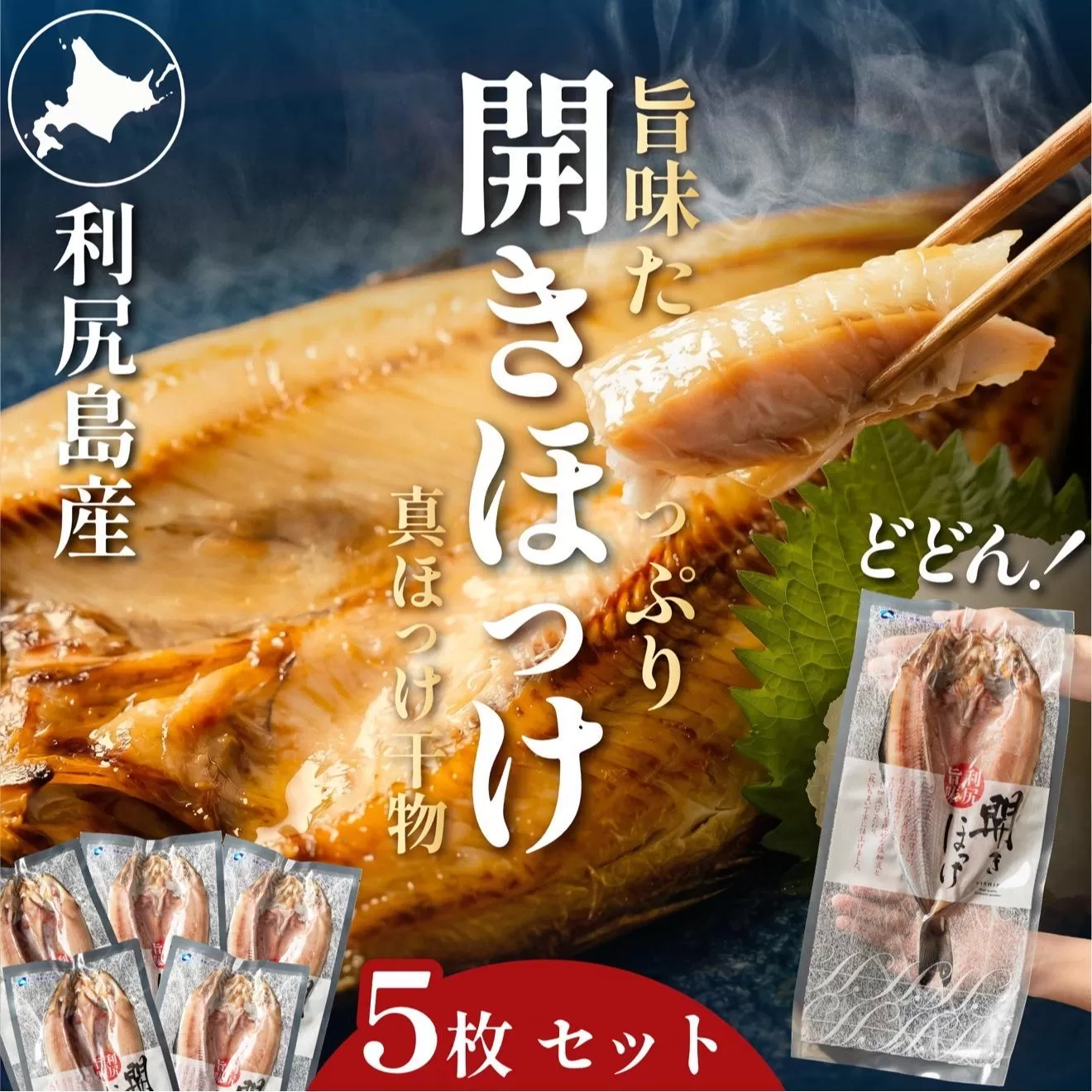 利尻島近郊の栄養豊かな海域で育った真ほっけを使用した、肉厚で風味豊かな開きほっけ5枚セットです。