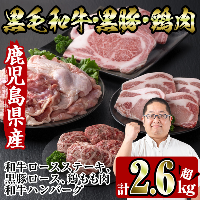 畜産王国鹿児島県より黒毛和牛・黒豚・鶏肉のセットをお届けします。