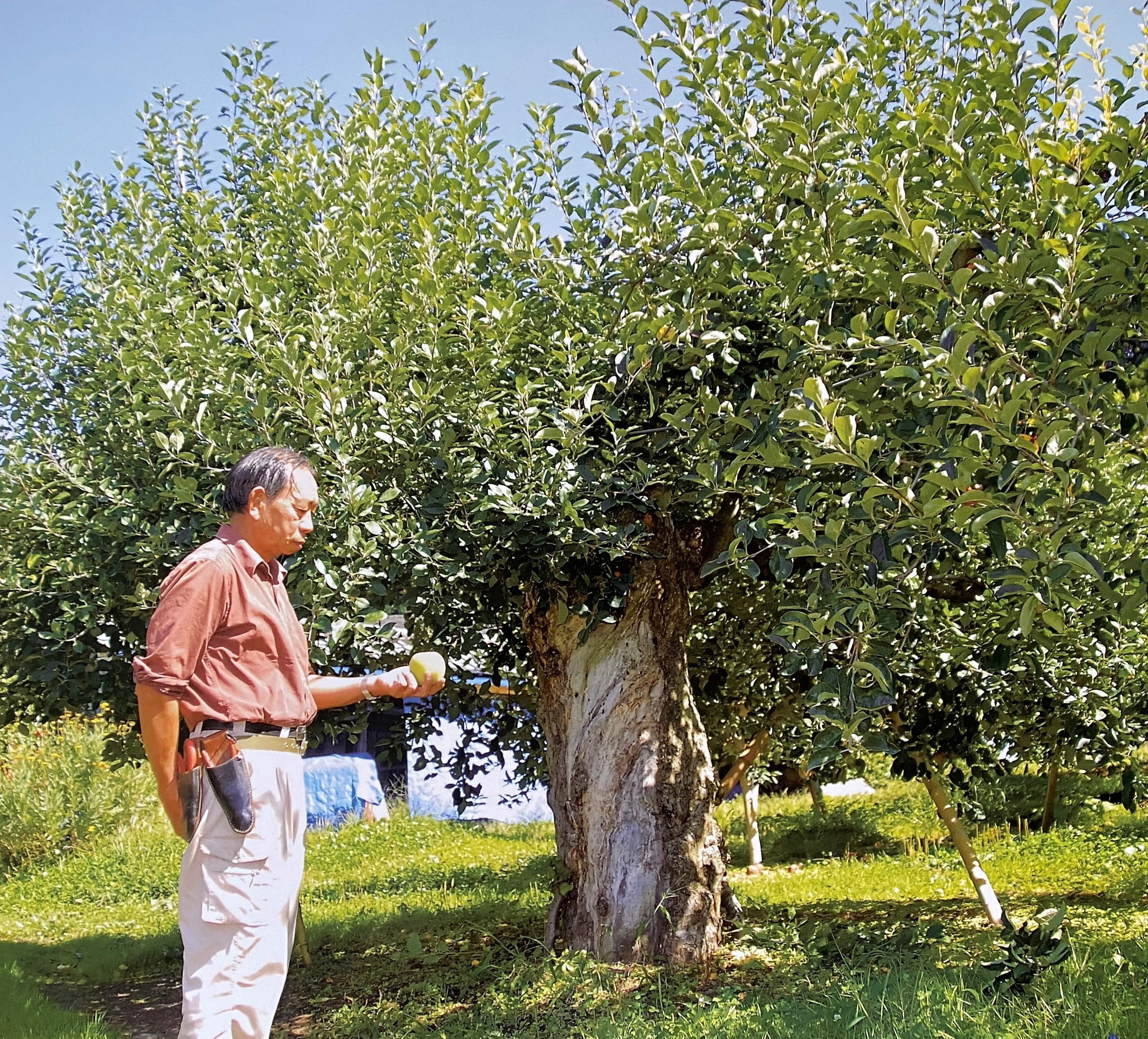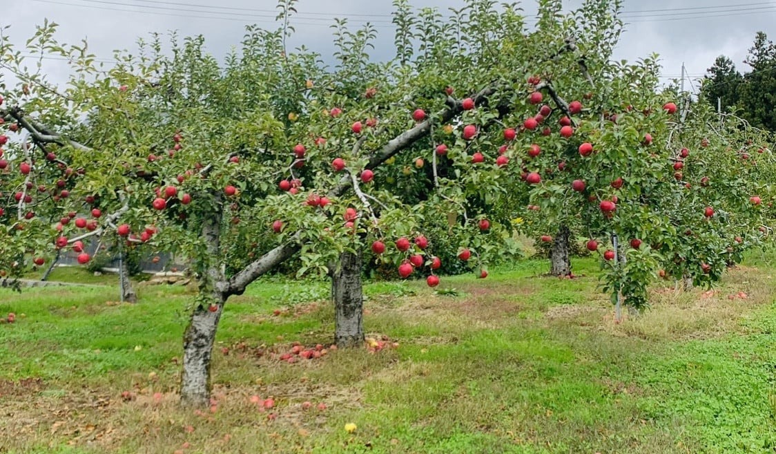 仙果園(せんかえん)は、陸前高田市内の農園で50種類のりんごを栽培しています。陸前高田市米崎地区は国内でも珍しい海沿いのりんご産地で、海からの反射光とミネラルを含んだ海風がりんごを美味しくします。『100%ストレートりんご果汁』は、旬の樹上完熟りんごを5品種贅沢にブレンドし、味わい豊かな天然りんご果汁に仕上げました。
