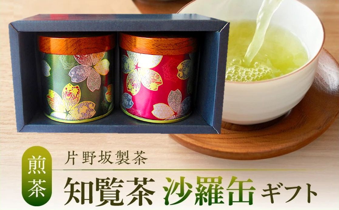 片野坂製茶で一番人気の煎茶を上品な桜柄の茶缶に100gずつお入れしました。