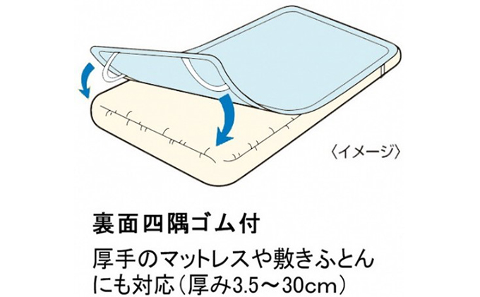 ※四隅ゴムは敷布団から厚さ30cmほどのマットレスにもお使いいただけます。(強引な引っ張りはゴムがちぎれる原因になりますので、ご注意ください。)