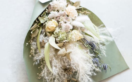 市外で生産された材料を使用し、市内において設計から制作に係る全工程を実施したドライフラワー。
