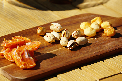 「ドライ温州みかん」はみかんの甘みと旨みを最大限に引き出すため低温乾燥温度で、じっくりと長時間乾燥を行ったドライみかんです。冷えたシャンパーニュ、ワインなどにぴったりのアソートです。