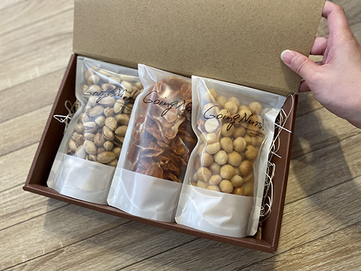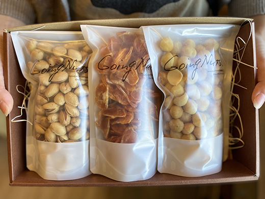 謝礼品発送業者:(株)エバンジェリスト(ゴーイングナッツ) TEL 0748ー431933