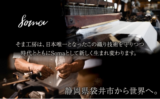 そま工房は、日本唯一となったこの織り技術を守りつつ時代とともにSomaとして新しく生まれ変わります。静岡県袋井市から世界へ。
