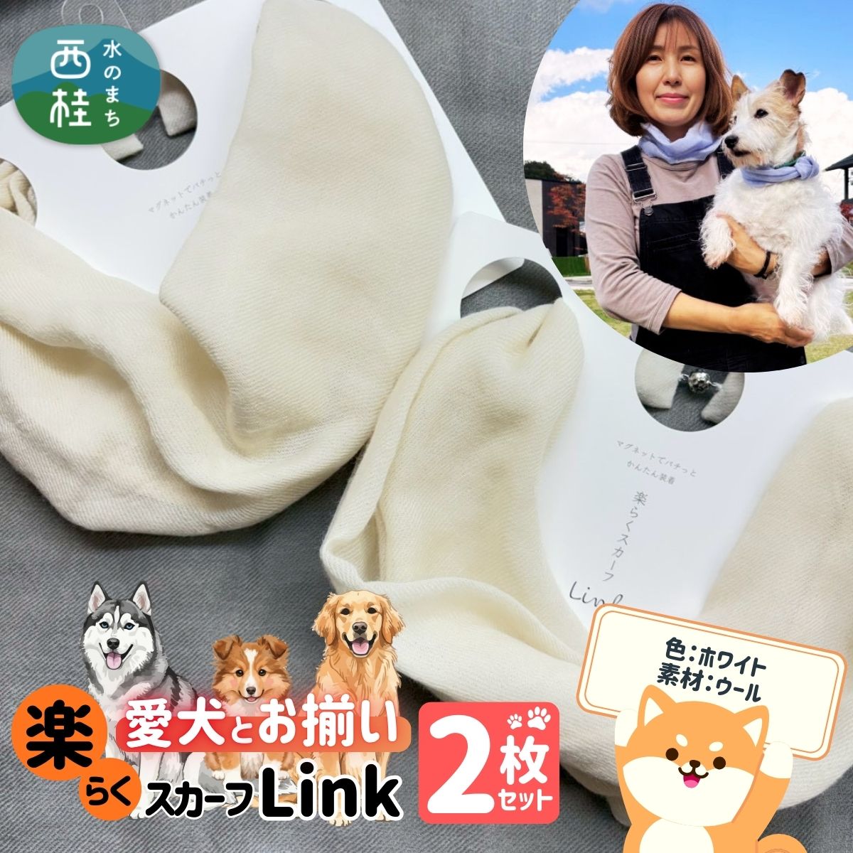 色:ホワイト・素材:ウール。愛犬とお揃いで着用できるセットです。
