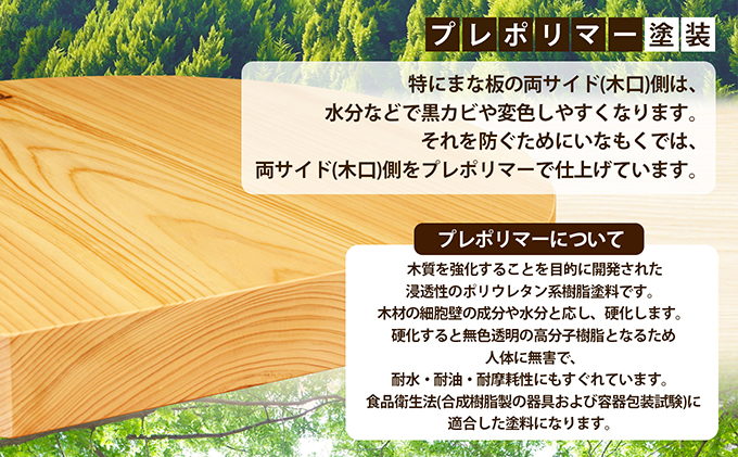 特にまな板の両サイド(木口)側は、水分などで黒カビや変色しやすくなります。それを防ぐためにいなもくでは、両サイド(木口)側をプレポリマーで仕上げています。(丸まな板の場合は円の側面すべてになります。)
