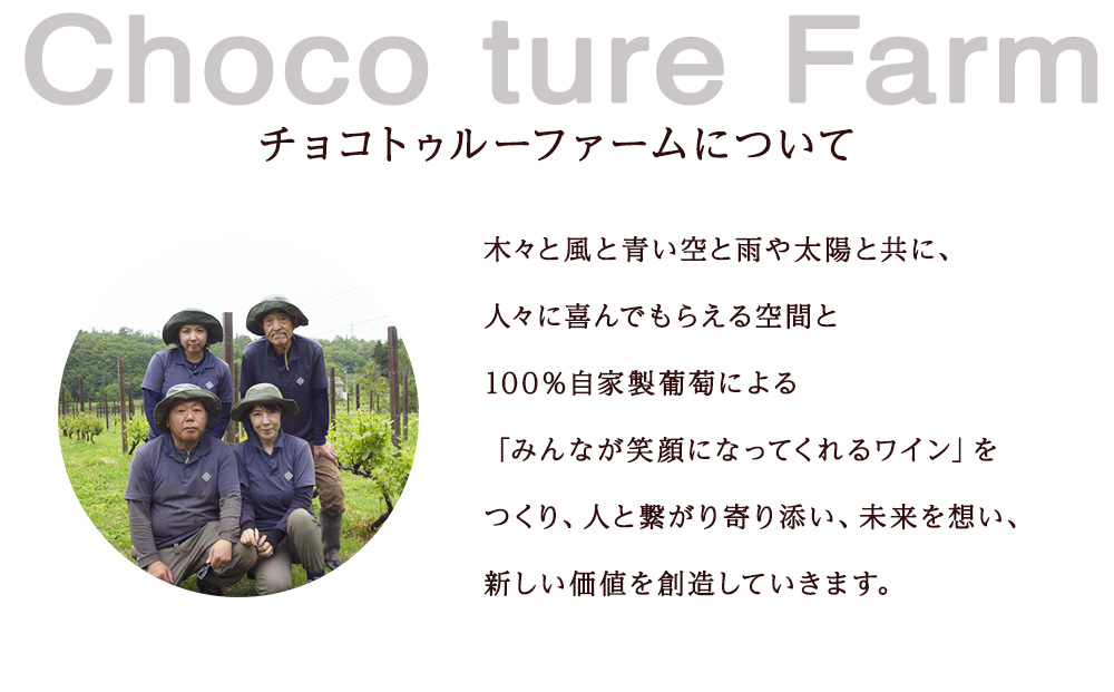千歳市チョコトゥルーファームにて栽培のワイン用ぶどうを100%使用し、千歳ワイナリーで醸造したこだわりのフィールドワインです。