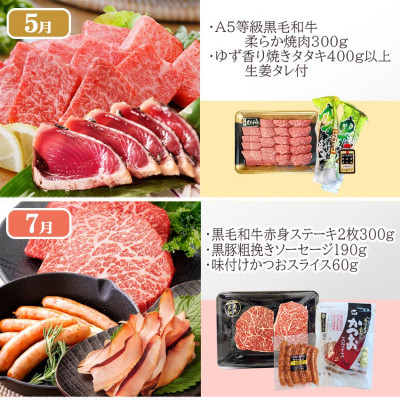 【5月】A5等級黒毛和牛やわらか焼肉用300g・ゆず香り炭焼かつおたたき2本(400g以上)生姜タレ付き