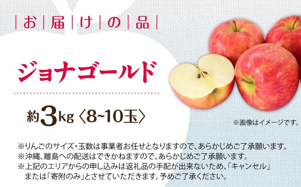 りんご 品種名「ジョナゴールド」8~10玉約3kg
