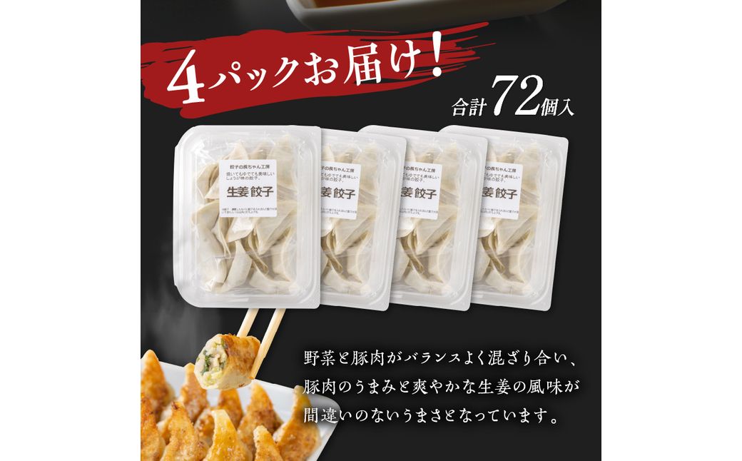野菜と豚肉がバランスよく餡の中で混ざり合い、豚肉のうまみと爽やかな生姜の風味が間違いのないうまさとなっている逸品です。