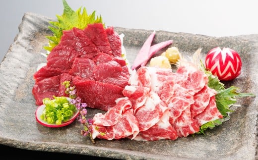 - ・赤身馬刺し:300g ・霜降り馬刺し:300g ・専用醤油:150ml×1