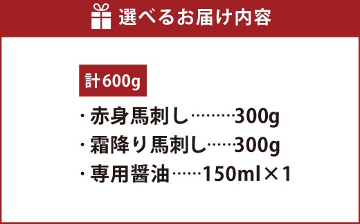 【桜屋】 赤身 霜降り 馬刺し 食べ比べ (各300g) 計600g (専用醤油付き 150ml×1本) 馬肉 お肉 馬刺