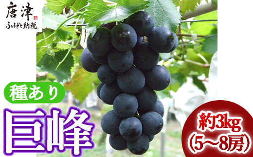 唐津市産 種あり巨峰 約3kg(約5〜8房程度)