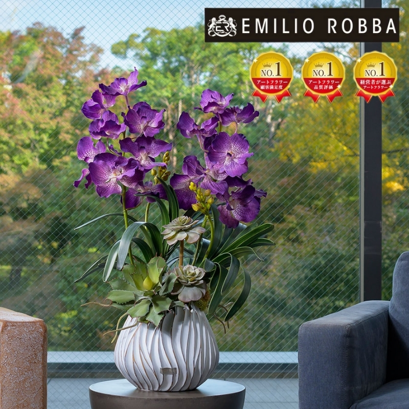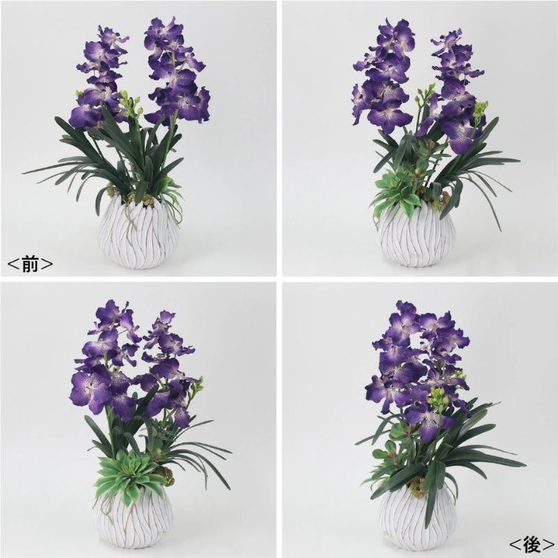ファイバー樹脂製の花器は軽く丈夫でユニークなデザインで、より魅力的にバンダをより引き立てています。