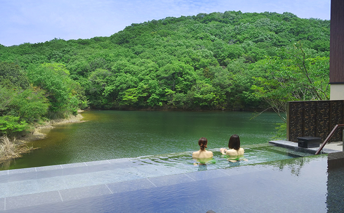 白雲谷池を眺める「水辺の湯」と開放的で季節感あふれる「森の湯」など四季折々の自然豊かな景観も人気です。