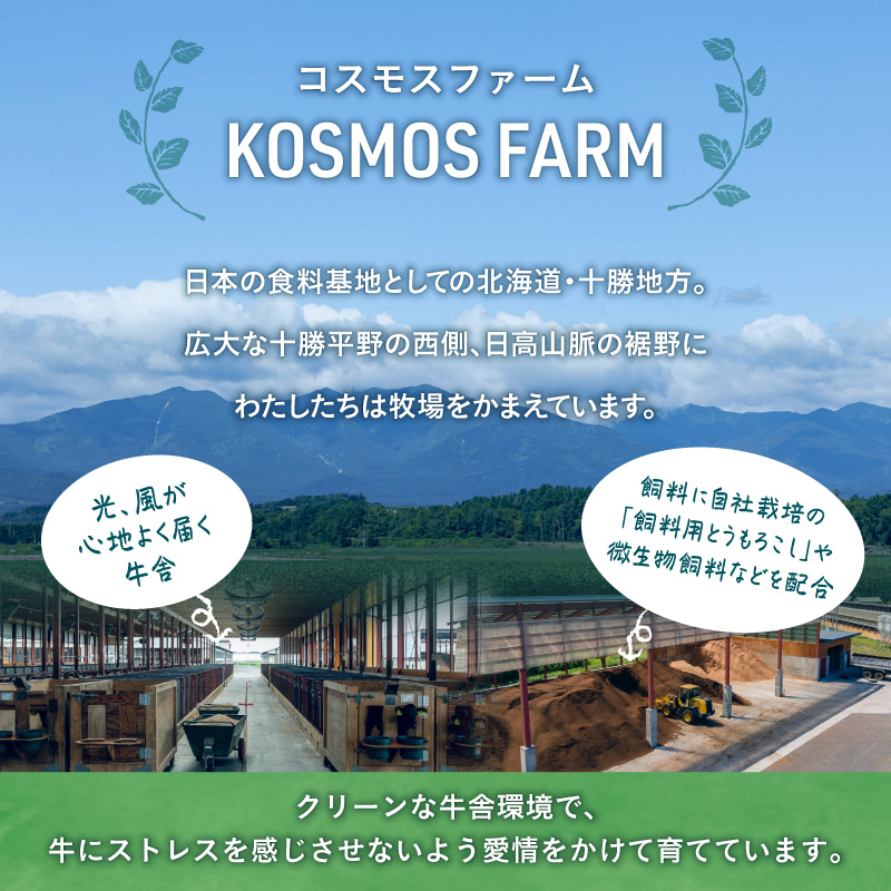 北海道十勝清水町のコスモスファームが、自ら育てた牛肉の美味しさを最大限に伝えるため、素材と製法に一切妥協せず仕上げました。