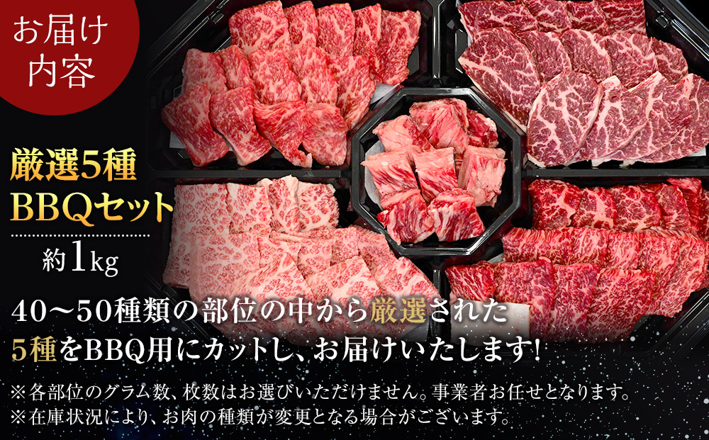 40種類~50種類の部位の中からその日の厳選された5部位をBBQ用にカットし、お届けいたします!