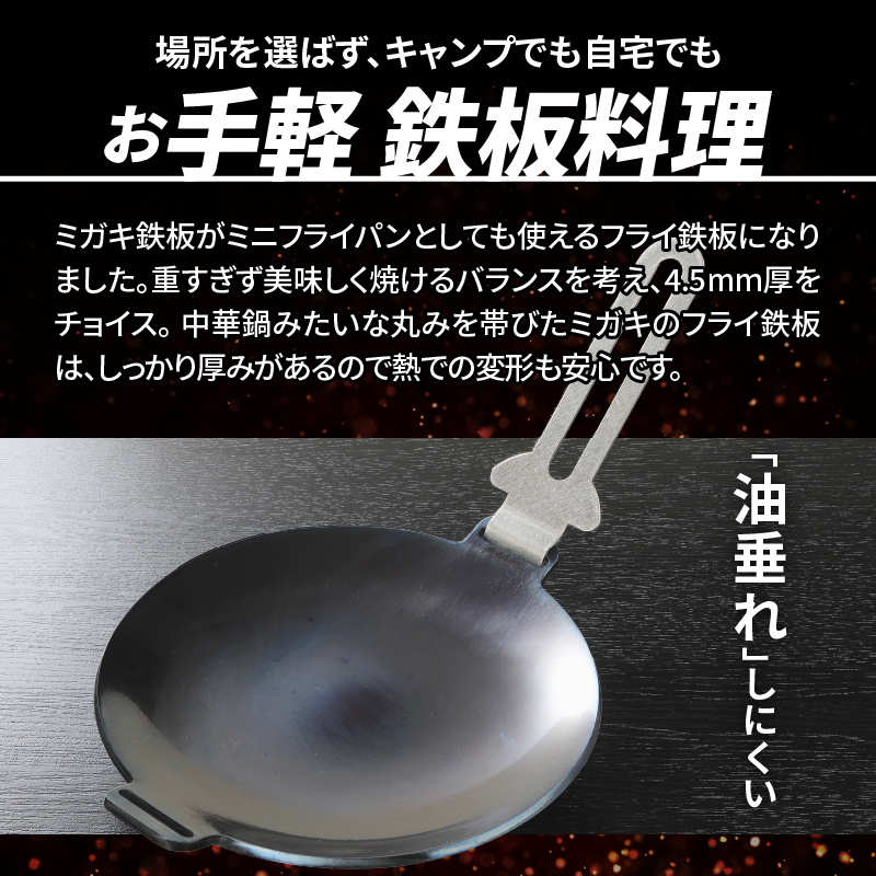 ミガキ鉄板が贅沢にミニフライパンとしても使えるフライ鉄板になりました。