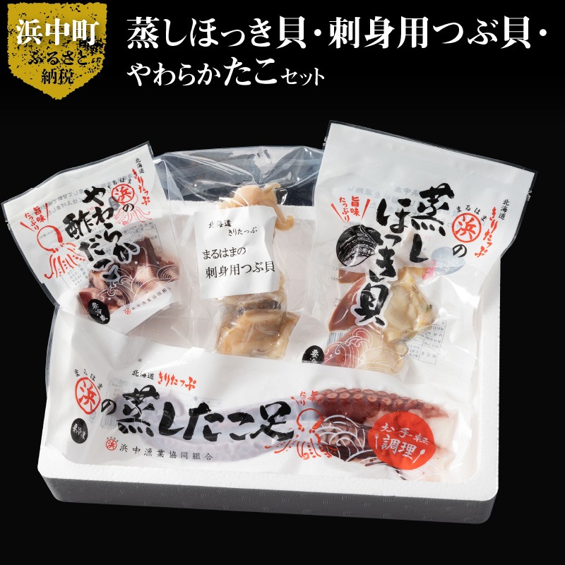 この機会に是非『たこ貝ミックスセット(蒸しほっき貝・刺身用つぶ貝・やわらかたこ・酢だこ)』をご賞味ください。