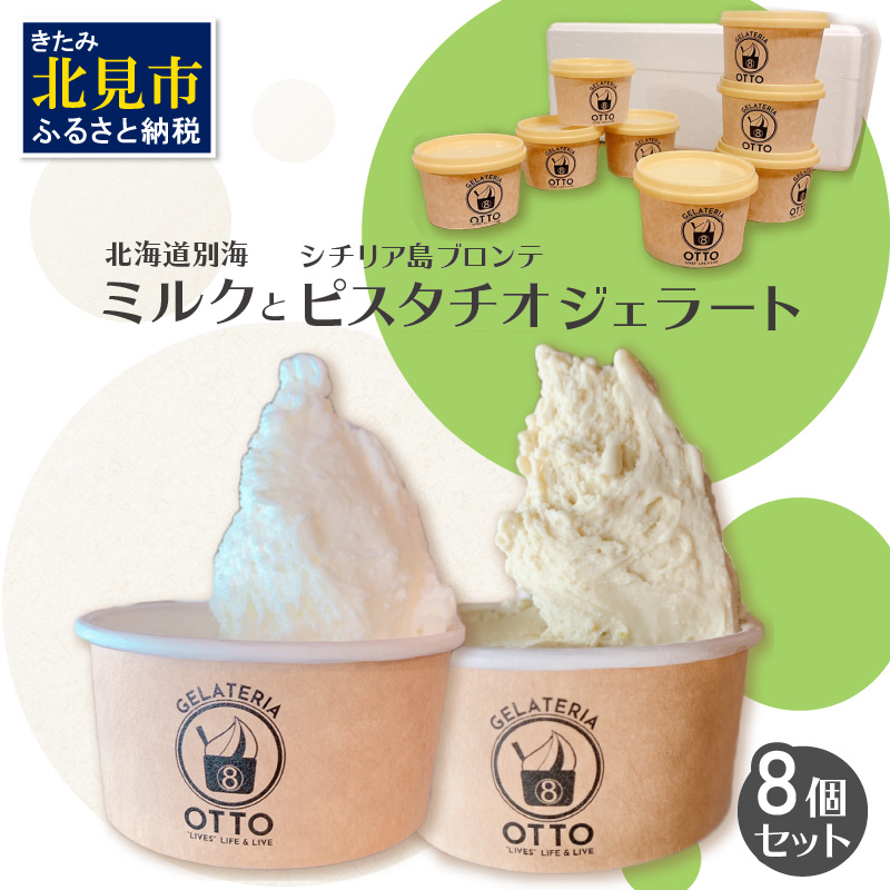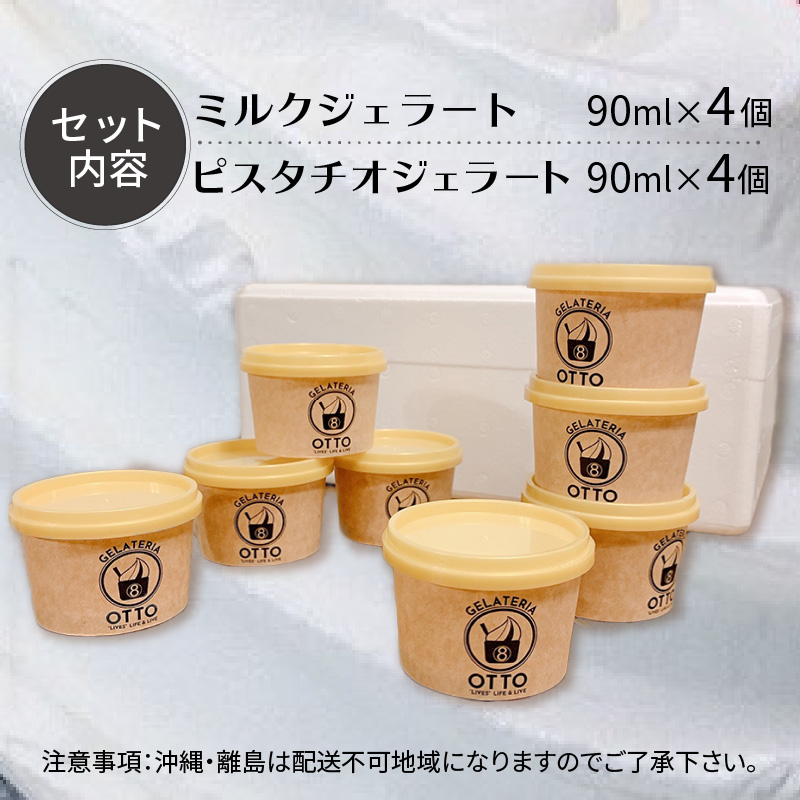 ミルクジェラート90ml×4ケ、ピスタチオジェラート90ml×4ケ