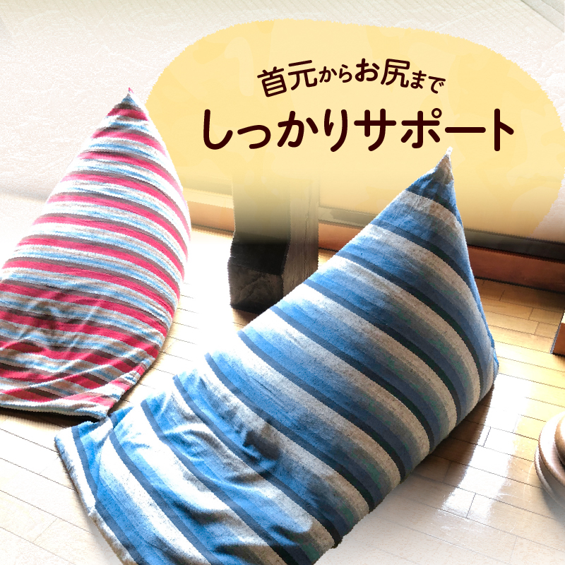 首元からお尻までサポートする大きさなので、ゆったりと快適に使えます。