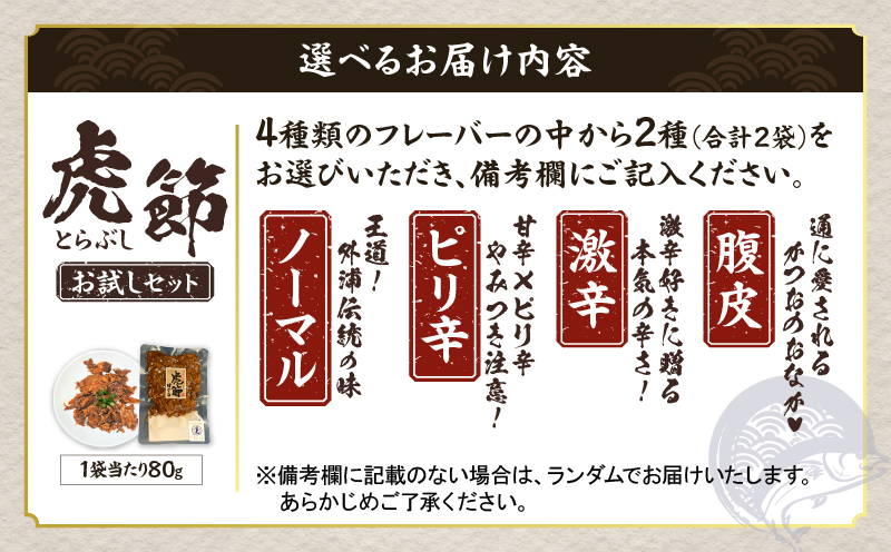この機会に、ぜひ『虎節2種お試しセット(80g×2袋)』をご賞味ください。