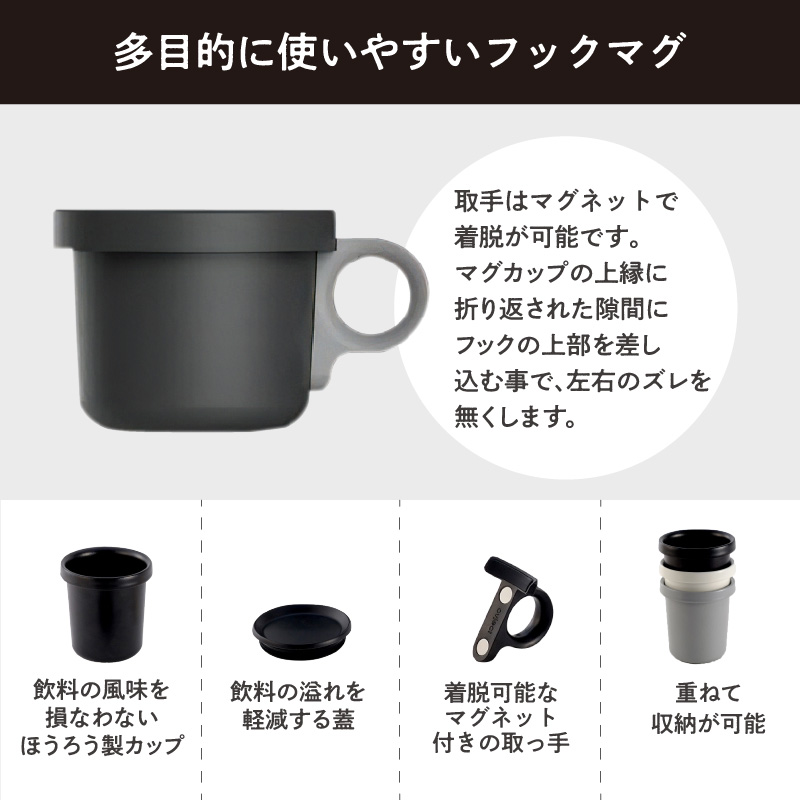 着脱可能なフックは、マグカップの曲線に合わせた設計。