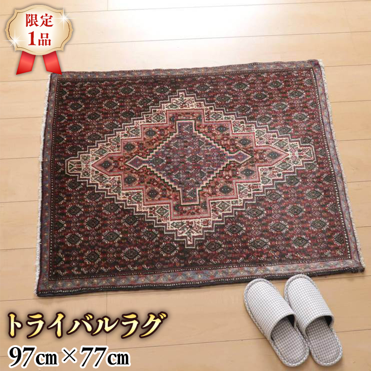 【限定1品】 トライバルラグ ビンテージ 1990年代 手織り ペルシャ絨毯 部族じゅうたん/オールド アンティーク ウール 玄関マットサイズ 97×77cm 骨董 ラグ (FS-22158) エントランスマット リビング ダイニング 寝室 書斎 和室 床暖房 ホットカーペット対応 [BP188-NT]-[BP188-NT]