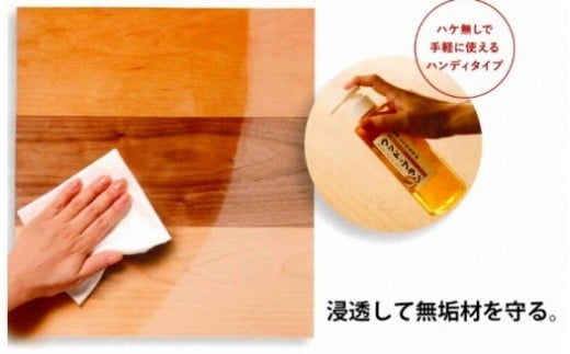 ・米ぬかのワックス成分と植物油を一体化。一度塗って、さっと拭き取れば滑らかな仕上がりになります。